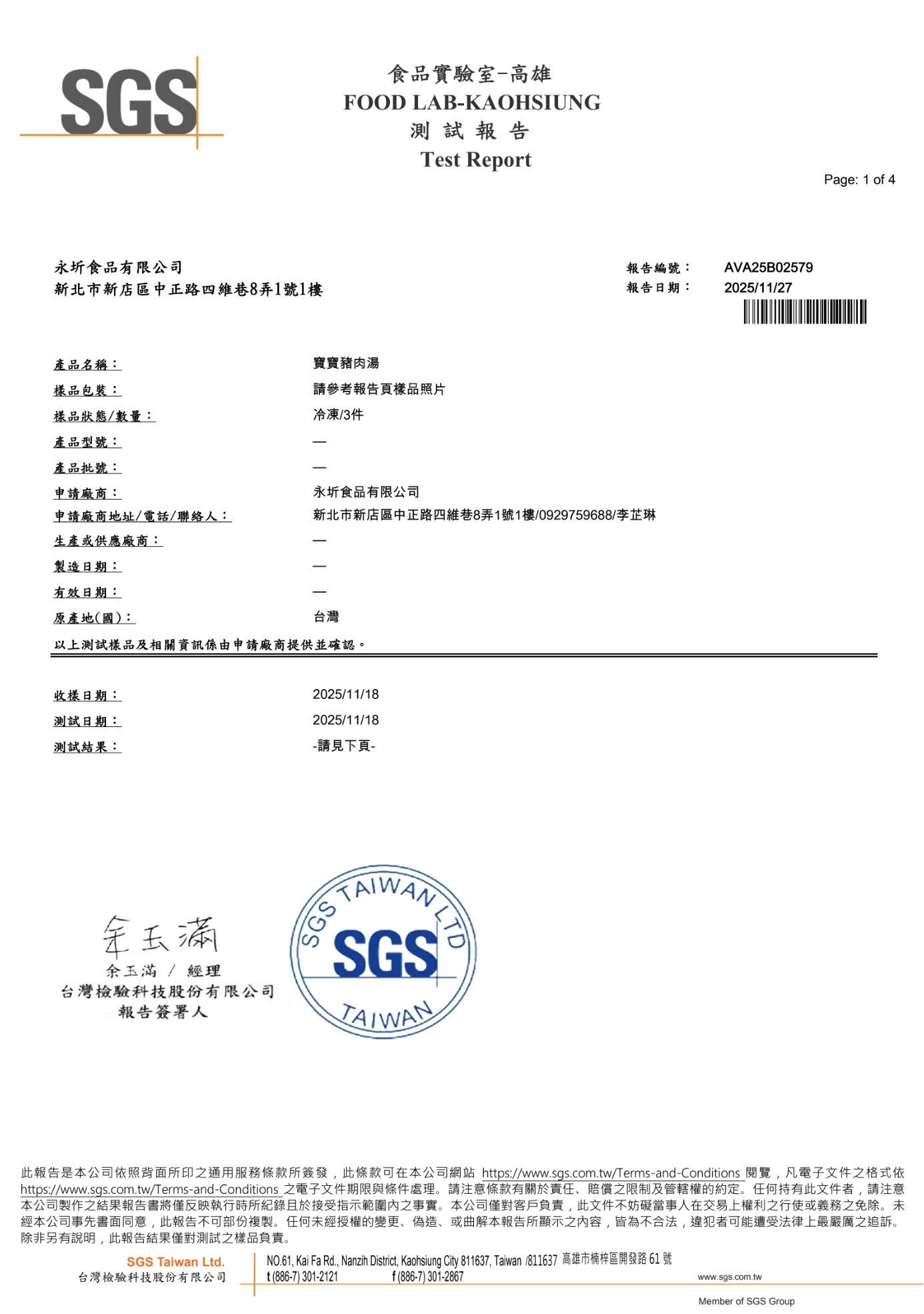 寶寶豬肉湯-SGS檢驗報告,永圻 YONGCHI| 寶寶副食品的首選