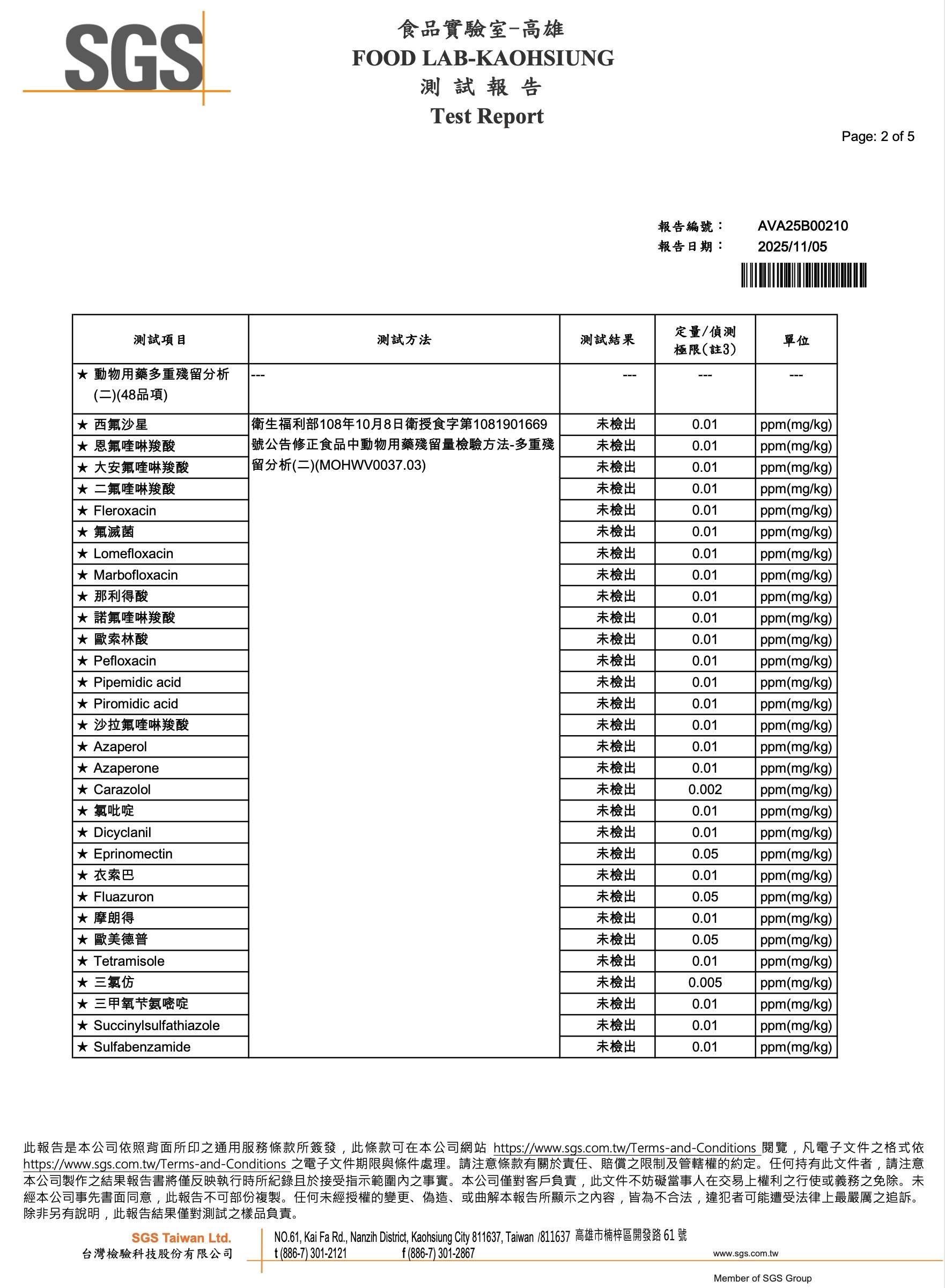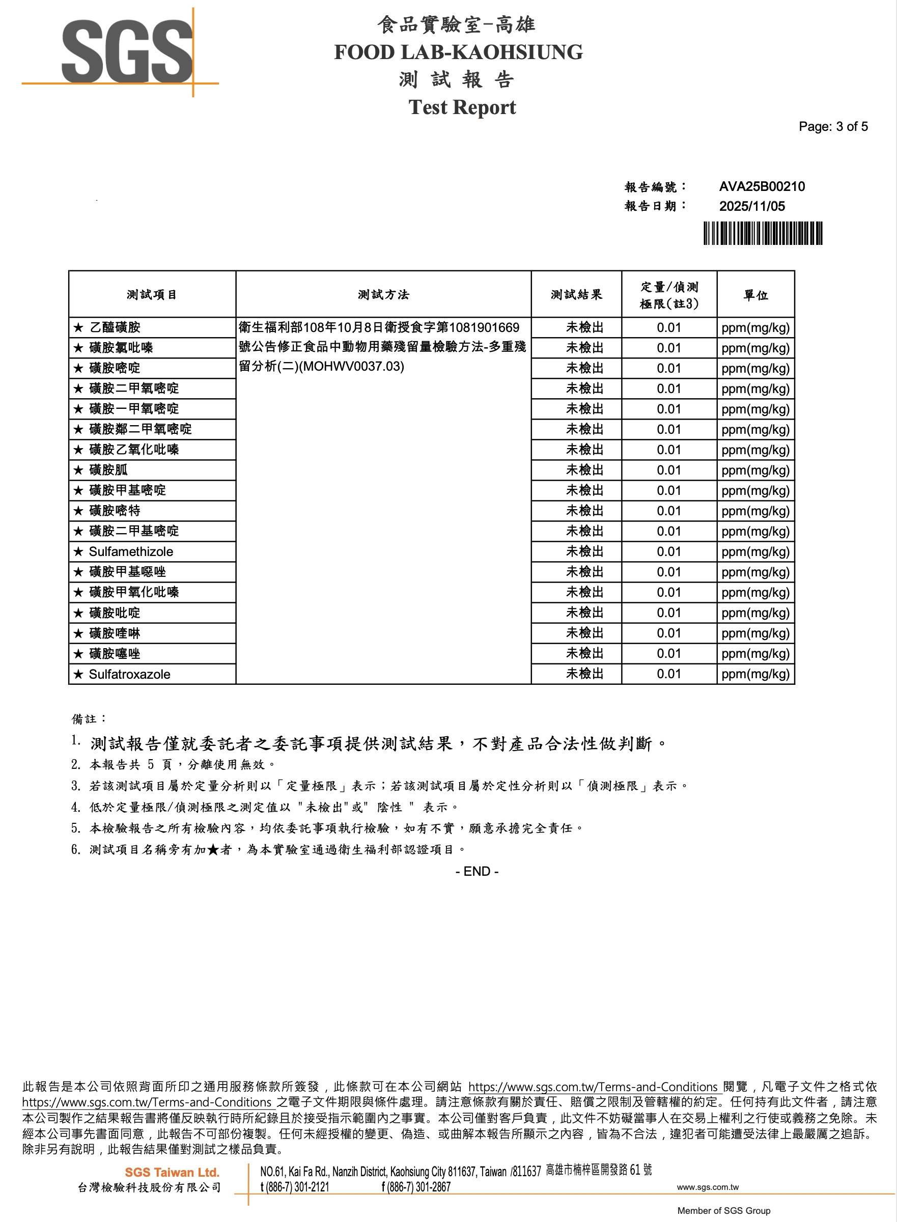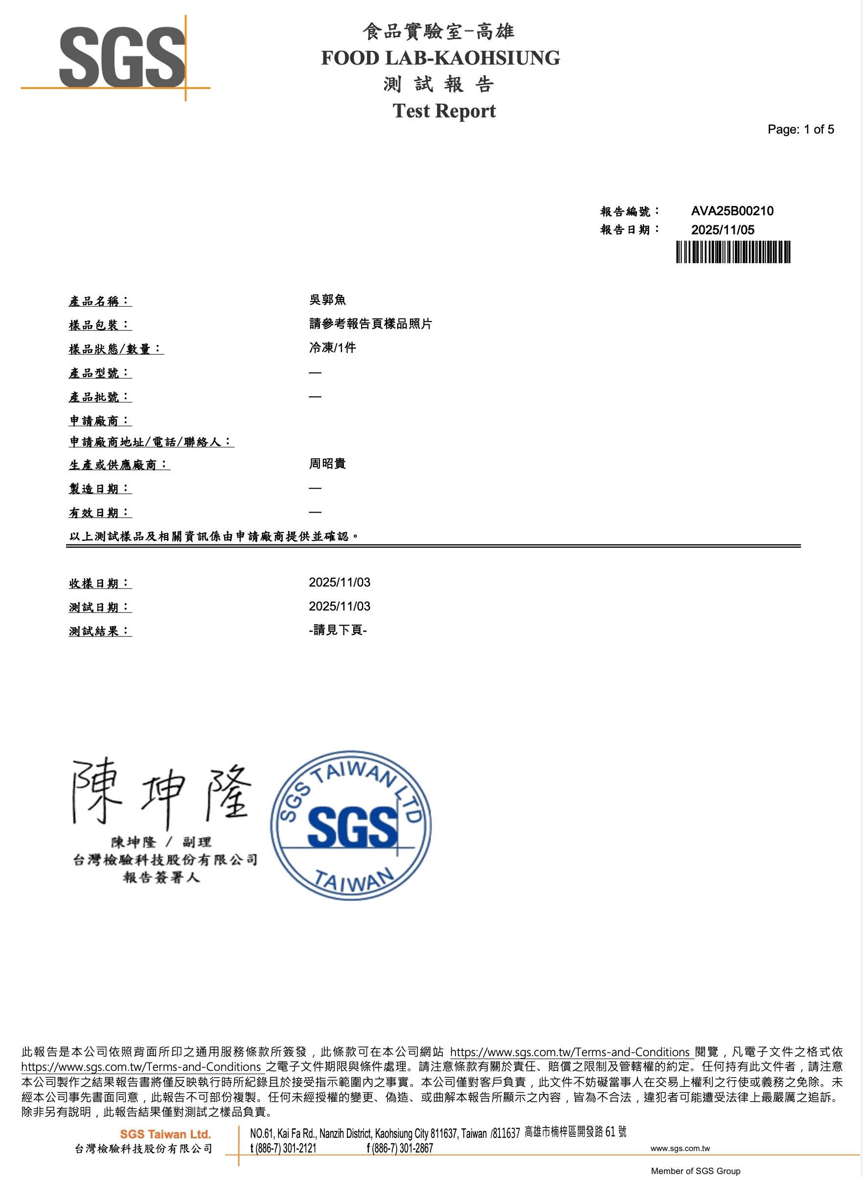 食材『鯛魚』-SGS檢驗報告