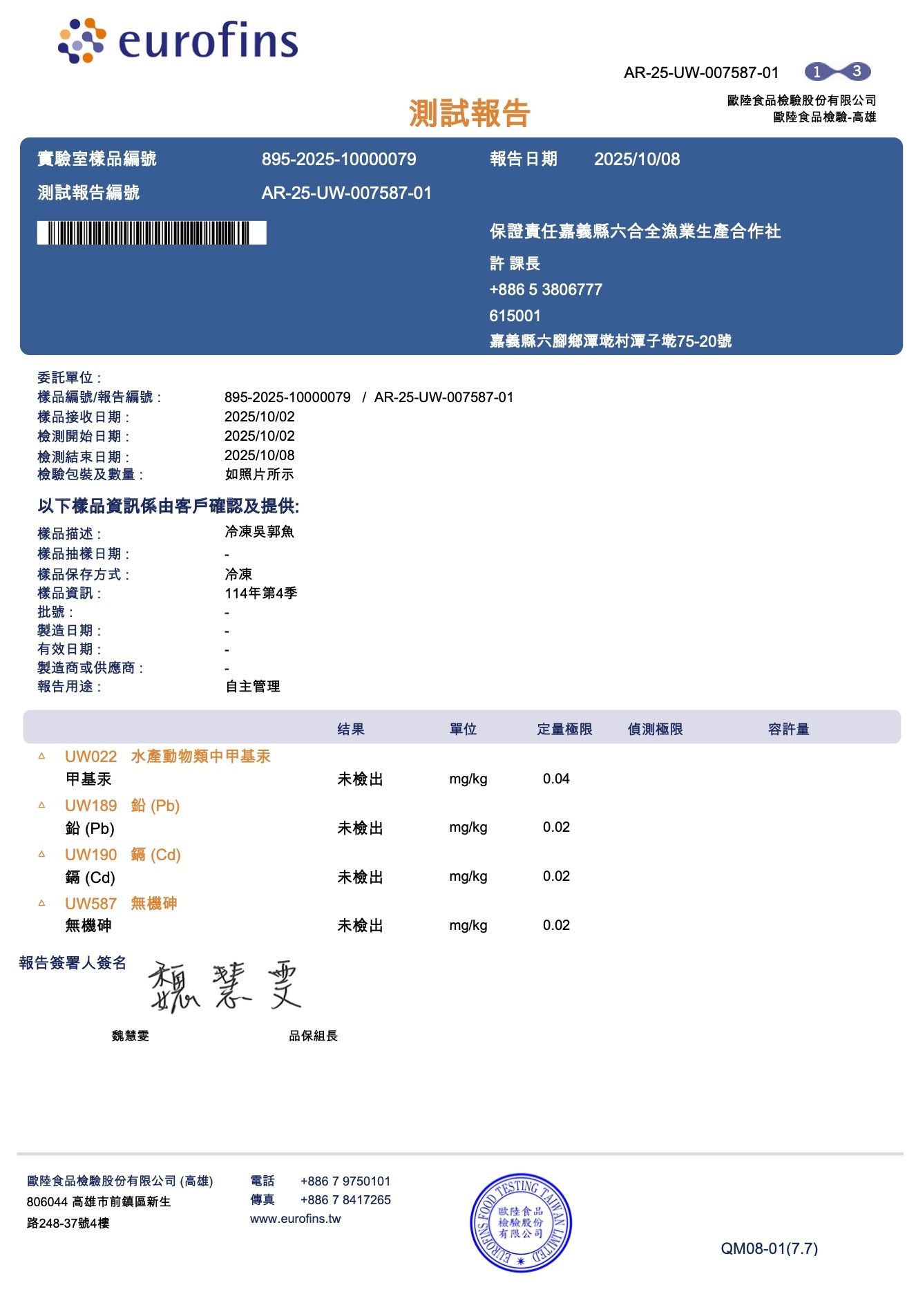 食材『鯛魚』-SGS檢驗報告,永圻 YONGCHI| 寶寶副食品的首選