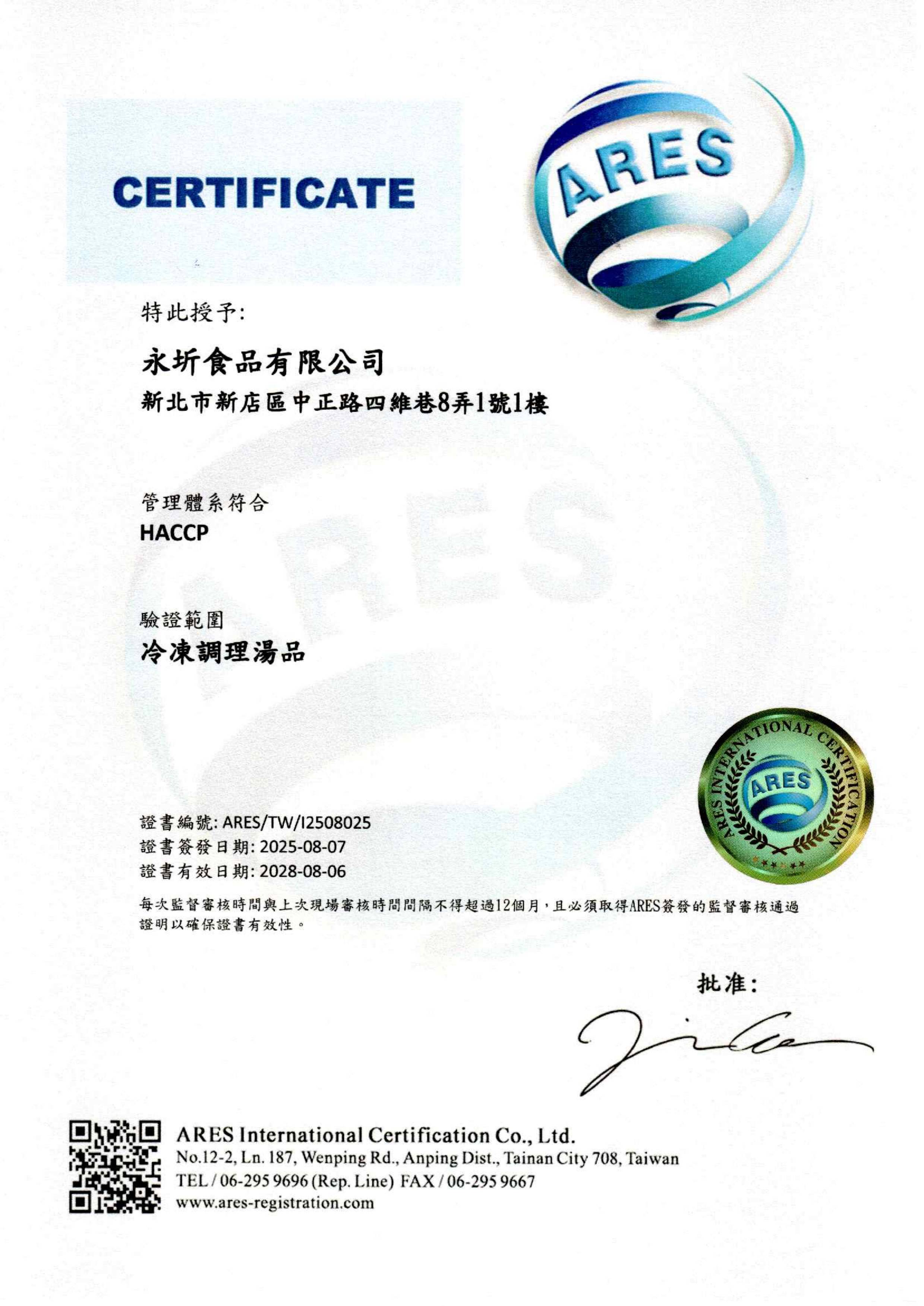HACCP&ISO22000證書,永圻享。鱸| 寶寶湯品的首選