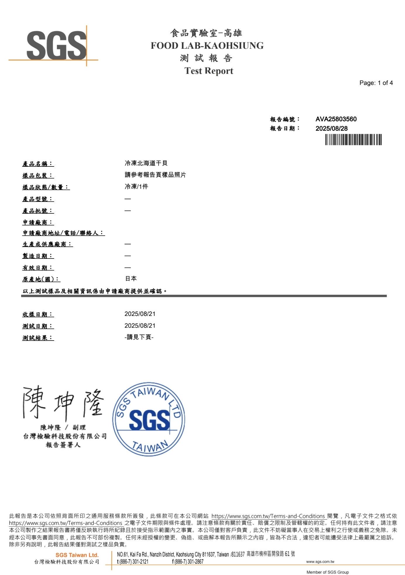 食材『干貝』-SGS檢驗報告,永圻 YONGCHI| 寶寶副食品的首選