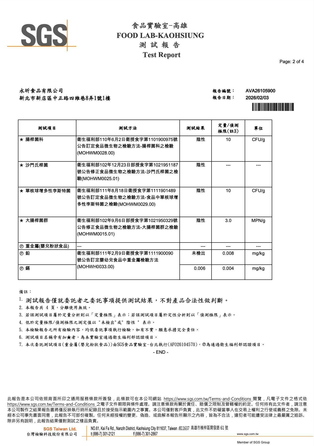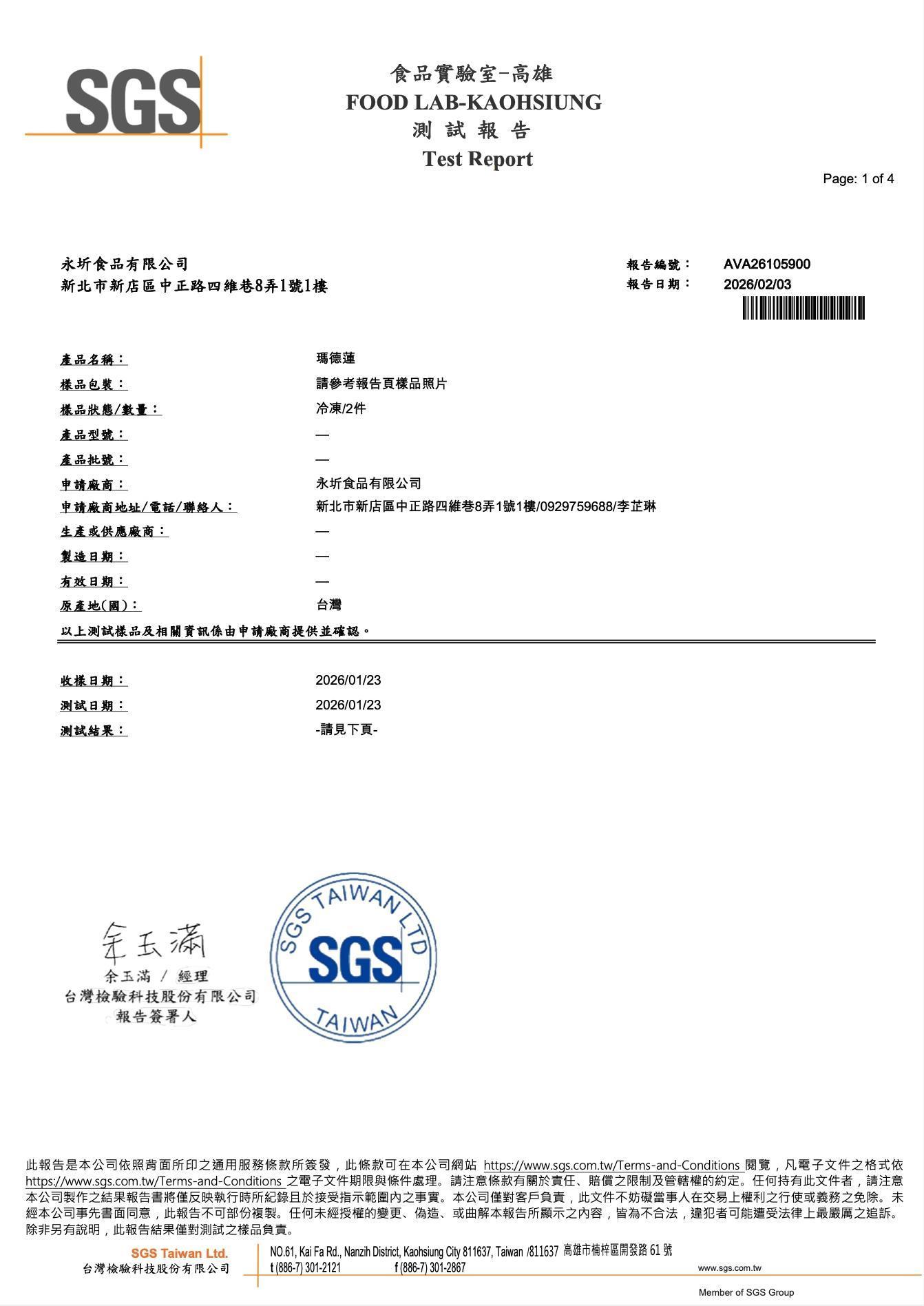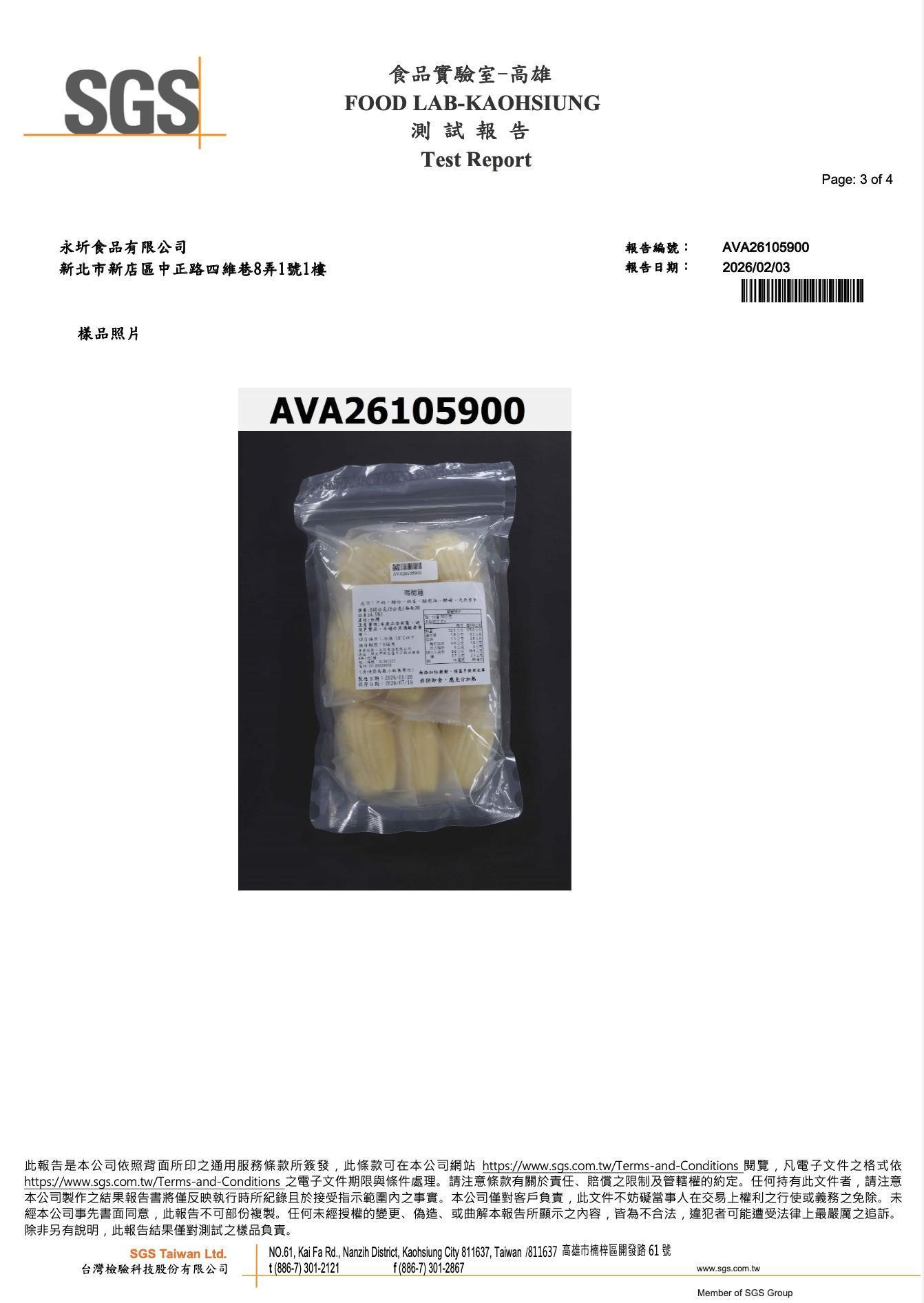 『瑪德蓮』-SGS檢驗報告,永圻 YONGCHI| 寶寶副食品的首選